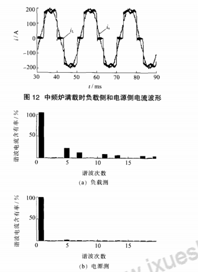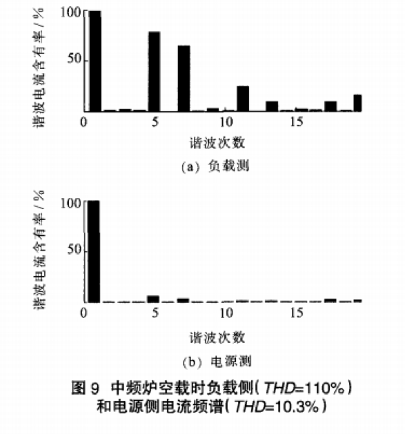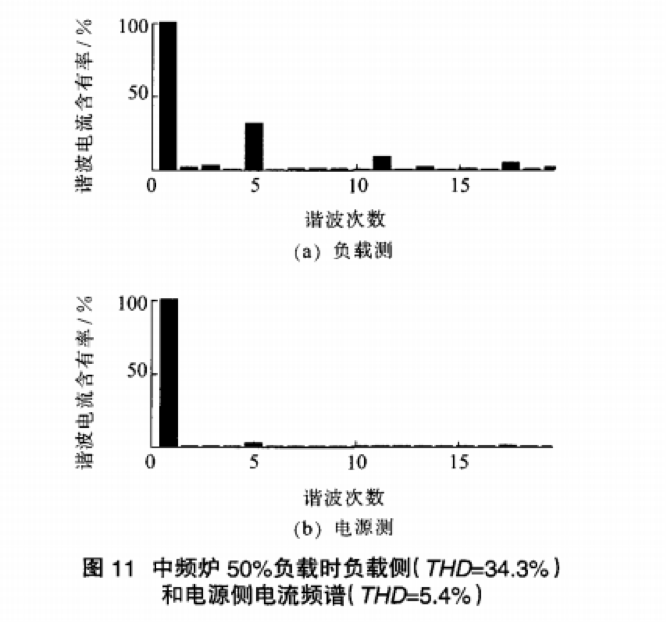 為了使中頻爐產(chǎn)生的諧波對(duì)公共電網(wǎng)的影響符合設(shè)備使用地供電系統(tǒng)的要求.可采取積極有效的治理措施以消除諧波污染,具體治理措施如下6]:一是變壓器采用Y/Y/A接線方式對(duì)于大容量的中頻爐.其供電變壓器可以采用Y/Y/△接線方式.通過改變整流器交流側(cè)變壓器的接線形式來抵消較低次的特征諧波但成本較高。二是采用LC無源濾波器.主要結(jié)構(gòu)是用電容器與電抗器串聯(lián)起來.組成LC串聯(lián)回路,并聯(lián)于系統(tǒng)中。這種方法比較傳統(tǒng).既可補(bǔ)償諧波,又可補(bǔ)償無功功率.結(jié)構(gòu)簡(jiǎn)單,一直被廣泛使用。但補(bǔ)償特性受電網(wǎng)阻抗和運(yùn)行狀態(tài)的影響。易和系統(tǒng)發(fā)生并聯(lián)諧振.且只能補(bǔ)償固定頻率的諧波.補(bǔ)償效果也不甚理想。三是采用APF,這是諧波抑制比較新的方法[7]。APF是一種動(dòng)態(tài)諧波補(bǔ)償設(shè)備,具有高度可控性和快速響應(yīng)性.能對(duì)頻率和幅值都變化的諧波進(jìn)行跟蹤補(bǔ)償.動(dòng)態(tài)特性好,且補(bǔ)償特性不受阻抗的影響,諧波補(bǔ)償效果最佳.因而受到廣泛重視。