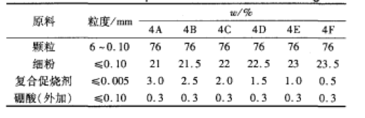 合理的顆粒級配可以提高搗打料的抗熱震性能及抗化學(xué)侵蝕性能,也能改善施工后中頻爐工作襯的燒結(jié)質(zhì)量。以文獻[5]為依據(jù),對顆粒級配進行微調(diào)整,研究顆粒級配對干式料性能的影響,具體配比見表2;然后,以優(yōu)選出4配方的粒度級配為基礎(chǔ),改變復(fù)合高溫促燒劑的加入量(等量取代細(xì)粉質(zhì)量),研究促燒劑對于式搗打料性能的影響,其具體配比見表3。