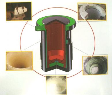 為了能使方便在拆解推出需要重新施工的爐襯時,我們一般都會使用備襯,也叫滑動平面層,使用備襯能省力的去除需要重新施工的爐襯,同時還能起到一個保護(hù)線圈漿料的作用,我們現(xiàn)在使用石棉布為備襯,石棉布在作為背襯使用方面一直有其不可避免的缺點,首先是其石棉成分對人體健康的影響,因為石棉纖維在被人體吸入肺部后是很難排出體外的,嚴(yán)重的還會產(chǎn)生致癌性,所以大家無論是在工作中的任何作業(yè)時都應(yīng)該配備好公司所配發(fā)的勞保用品。第二,就是石棉布的韌性不夠,我們在爐底和爐襯施工時經(jīng)常有不小心碰到石棉布而造成石棉布破損,給我們帶來不小的麻煩,而這些破損處如果萬一沒有及時處理就有可能有影響爐襯安全的問題出現(xiàn)。還有一點就是其熱導(dǎo)率的問題,石棉本身就是一種隔熱物體,在我們的爐襯使用中爐襯一直有著比較分明的溫度梯度,由于石棉布的熱導(dǎo)率較差和其厚度過厚等原因會影響到爐襯的熱損效果造成爐襯松散層厚度減少,這給我們的生產(chǎn)使用過程帶來一定的安全隱患。由于石棉布存在著以上缺點,現(xiàn)在一些鑄造廠家都在使用云母紙來替代石棉布,云母紙有較好的韌性,而且其厚度只有0.32毫米,根本不會影響到爐襯的溫度梯度。另外由于云母紙的不透氣性也能大大降低爐襯在燒結(jié)過程中由于爐襯料中的水氣問題造成的誤報警次數(shù)等這些優(yōu)點使云母紙迅速的普遍作為備襯使用。在鋪設(shè)備襯前要根據(jù)電爐的大小高度提前準(zhǔn)備好,鋪設(shè)時先清除上次遺留在爐壁上的材料,清除干凈后才能鋪設(shè),鋪設(shè)時要一人下到爐膛內(nèi)部,另一人則站在爐子上面把備襯料垂直放下,長度為超出爐底頂出塊10-20CM最好,然后由爐內(nèi)人員負(fù)責(zé)將它捋平,讓其緊貼爐壁,然后在放第二塊備襯,放第二塊備襯時要和第一塊重疊搭接10CM左右,防止加爐襯料時沖開備襯,依次類推放下其剩余備襯料,直到把爐子線圈完全遮住.